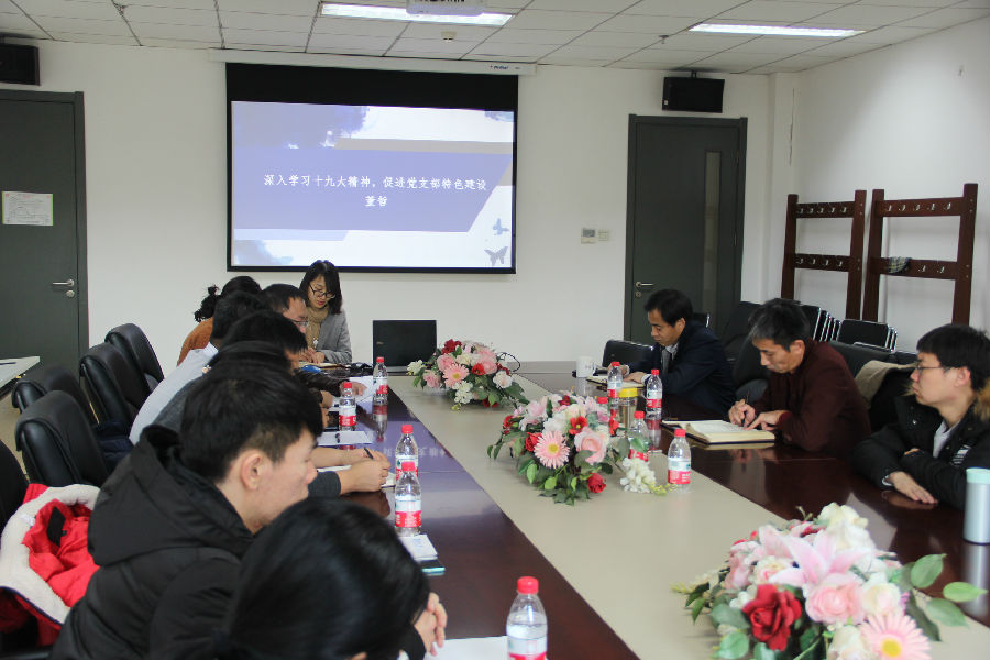 燕山大学外国语公司英语系党支部书记董哲老师介绍了公司的基本情况,重点以“深入学习十九大精神,促进党支部特色建设”为题,总结了燕山大学外国语公司通过观看十九大报告直播、发放学习读本、学习读物、公司集中学习、支部讨论、举办学习竞赛活动等多种方式学习十九大精神,取得了突出效果。