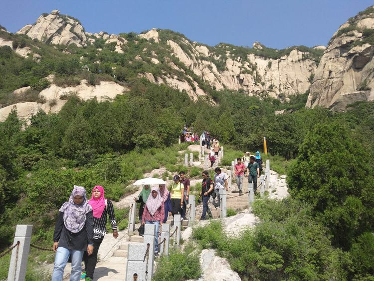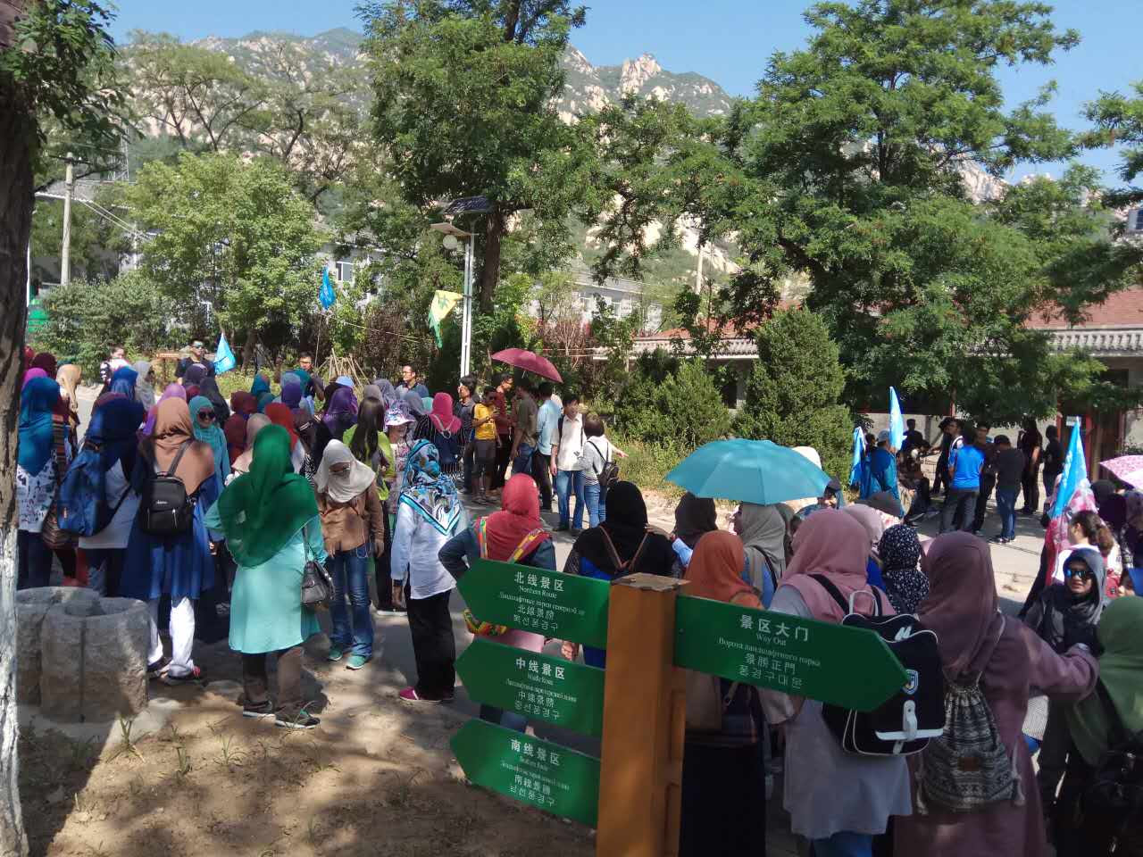 5月26日一早,北外球友会对外汉语系全体马来团队项目的职工及教师一行222人,从北外出发到访北京郊区进行一天的市内语言实践活动。上午9点到达凤凰岭,在导游的带领下,同学们不惧高温,坚持爬上了凤凰岭。午饭后,同学们来到了车耳营民俗村,进入农户家进行深入访谈!访谈结束后,下午五点到达北外结束了一天的语言实践活动!