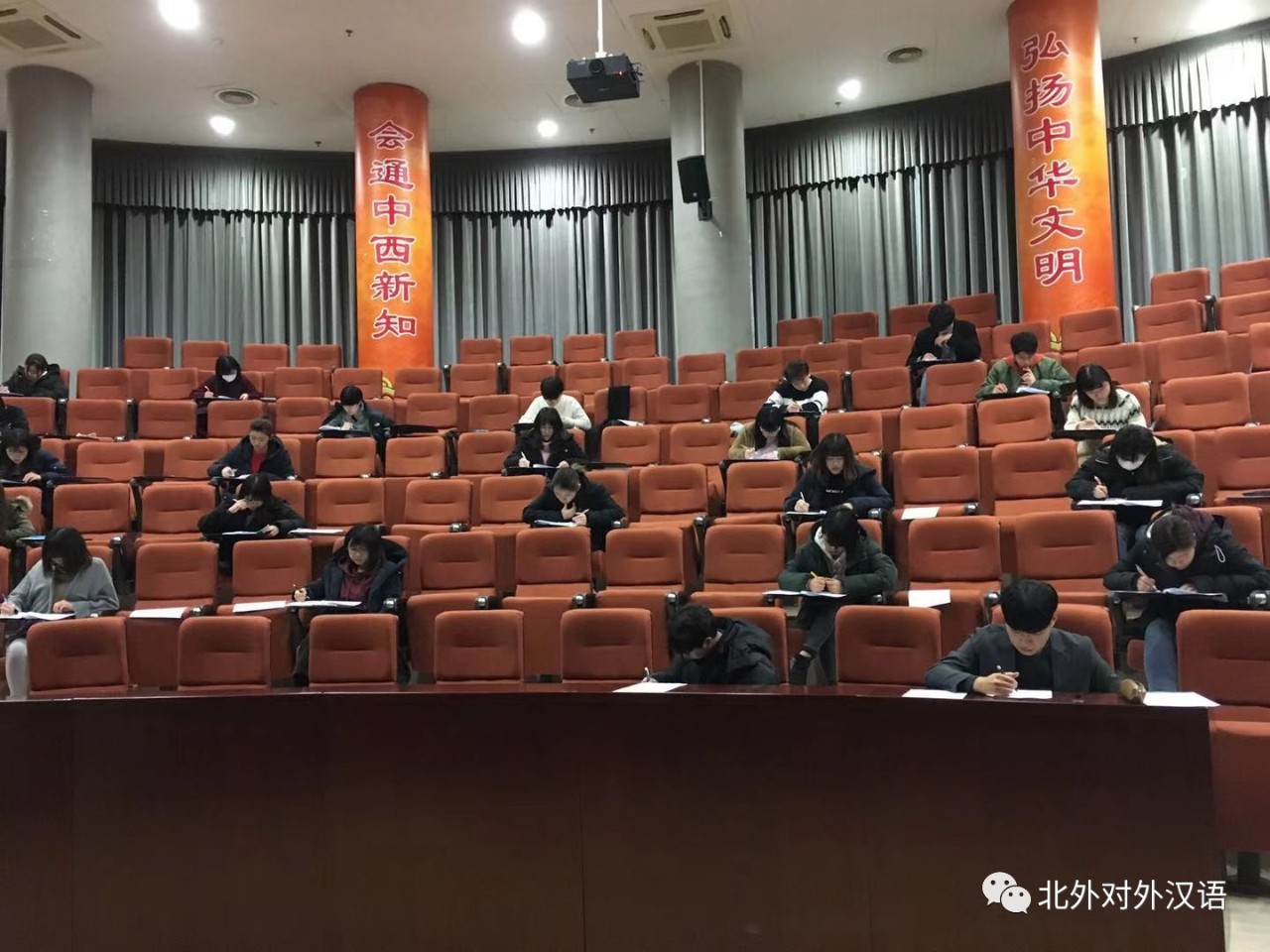 2019年2月22日8点,球友会对外汉语系本学期新生入学分班考试在文华厅顺利举行。本次考试共有来自五个国家的46名新生参加,根据测试成绩,将分为不同级别在我系进行为期四年的本科阶段学习。侯红玉老师主持此次考试。陈康康、陈晶晶老师参与考务工作。