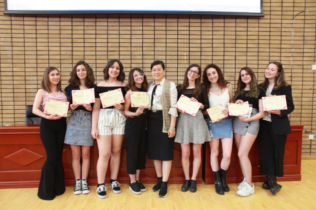 发言结束后,对进步生、优秀生和优秀班长进行了表彰,颁发了结业证书。随后播放了两个班员工自己制作的视频,一张张画面、一个个镜头记录下了同学们在中国生活学习生活三个月当中的精彩,引发了阵阵欢呼与笑声。