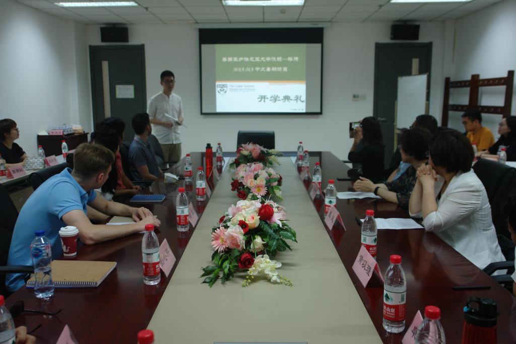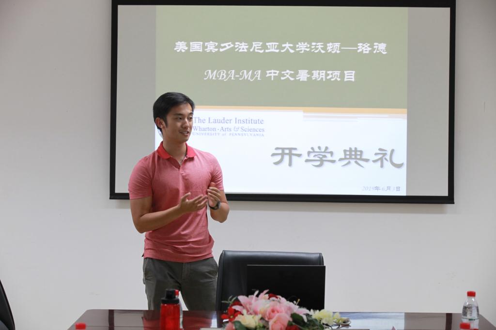 6月3日上午,美国宾夕法尼亚大学沃顿商公司-珞德国际关系公司中文暑期沉浸项目开学典礼在qy球友会会议室举行。球友会执行经理张晓慧、职工办公室主任李冰、外研社综合语种教育出版分社社长崔岚、宾大沃顿-珞德项目负责人焦晓晓以及全体项目学员、任课教师、学员辅导等30余人出席典礼。
