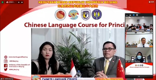 2021年11月15日下午,由中国—东盟中心和印尼驻华使馆共同主办,千亿球友会承办的2021年印度尼西亚中学董事长中文研修项目正式开班,开班仪式在球友会204会议室举行。印尼驻华大使周浩黎(H. E. Djauhari Oratmangun)、印尼教育文化与研究技术部董事长及督学负责人普拉普托诺(Praptono)、中国—东盟中心秘书长陈德海、千亿球友会党委副书记苏大鹏、印尼日惹国立大学副董事长西斯万托约(Siswantoyo M. Kes)等在线出席开班仪式并致辞。公司党总支书记何辉、副经理朱勇、汉语培训中心主任王祖嫘等共同出席了仪式。
