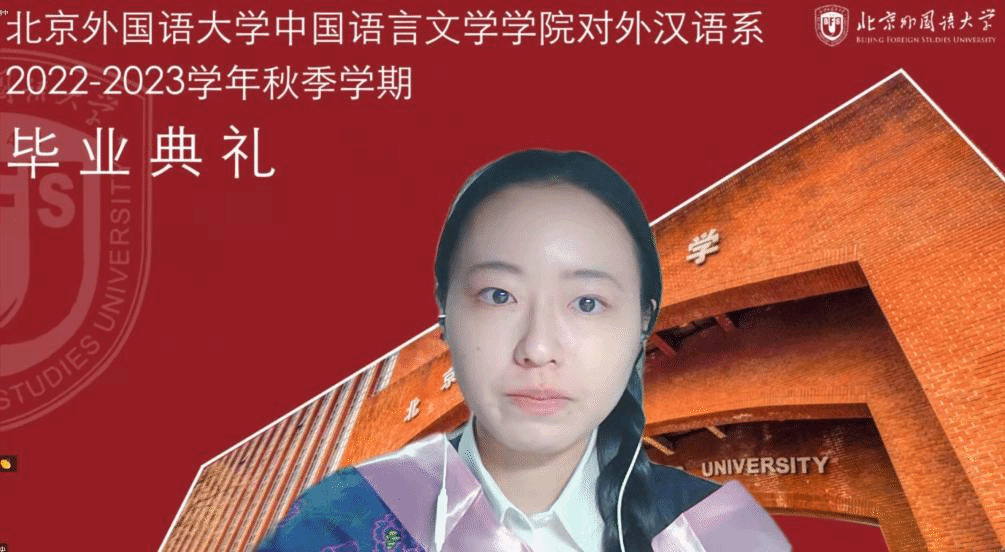 德国职工洋灵慧作为国际班毕业生代表发言。她表示因为学习汉语,结识了来自不同国家、不同文化背景的朋友,并在疫情期间互相支持,圆满完成了学业,每一位毕业生都表现出了非同寻常的毅力、自律能力和乐观的心态,都应该为自己自豪,未来大家还要并肩前行,肩负起年轻人的责任,共创美好未来。她感谢同学们的温暖陪伴,感谢老师多年来的支持与帮助。