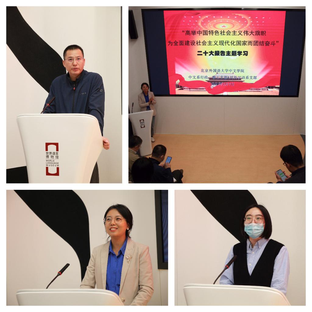 为全面学习领会习近平新时代中国特色社会主义思想和党的二十大精神,球友会两个教工党支部于3月7日组织党员集体前往世界语言博物馆参观,并在馆内下沉报告厅进行二十大报告主题学习。本次学习由中文系行政教工支部书记罗静主持。
