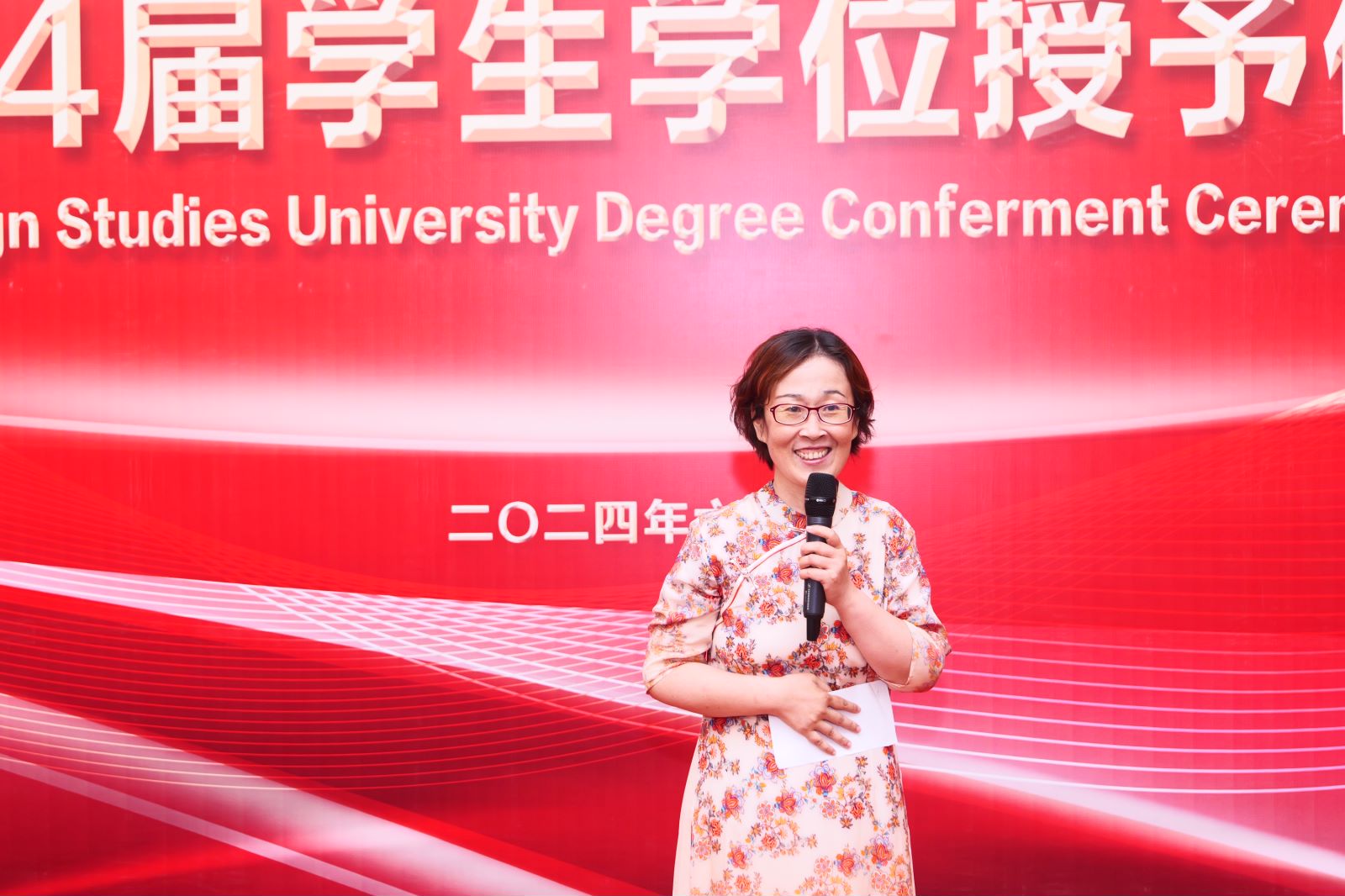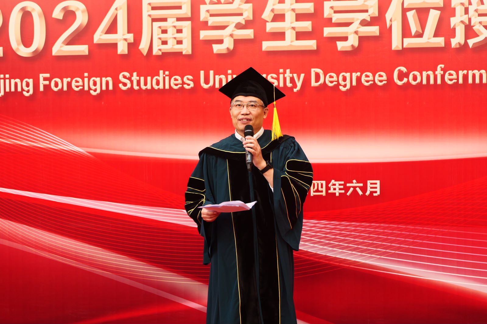 学位授予仪式由院学位委员会主任高育花教授主持。何辉教授、李建盛教授、研究生导师熊文新教授和王继红教授为公司2024届毕业生拨穗授予学位。